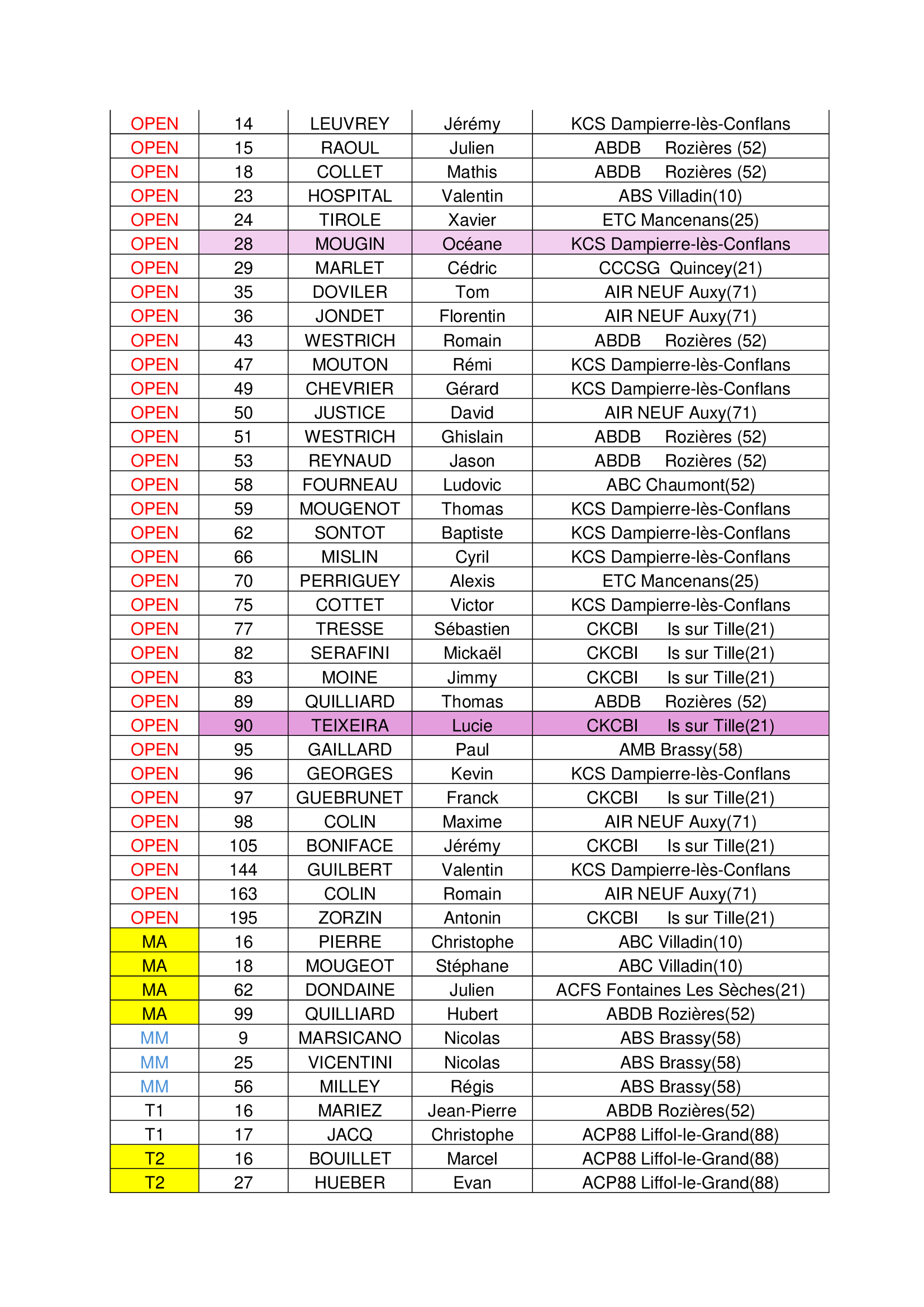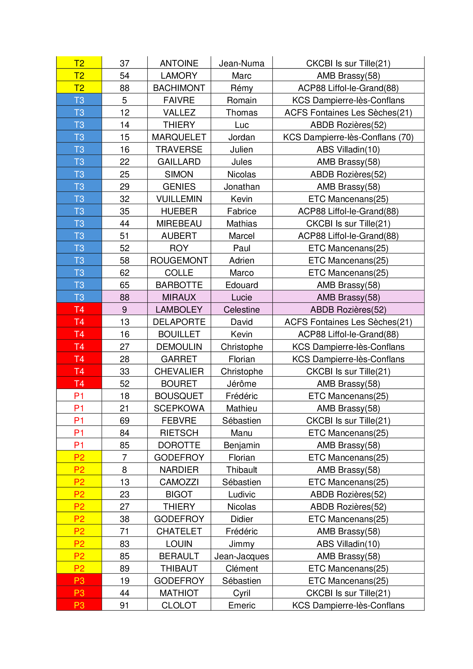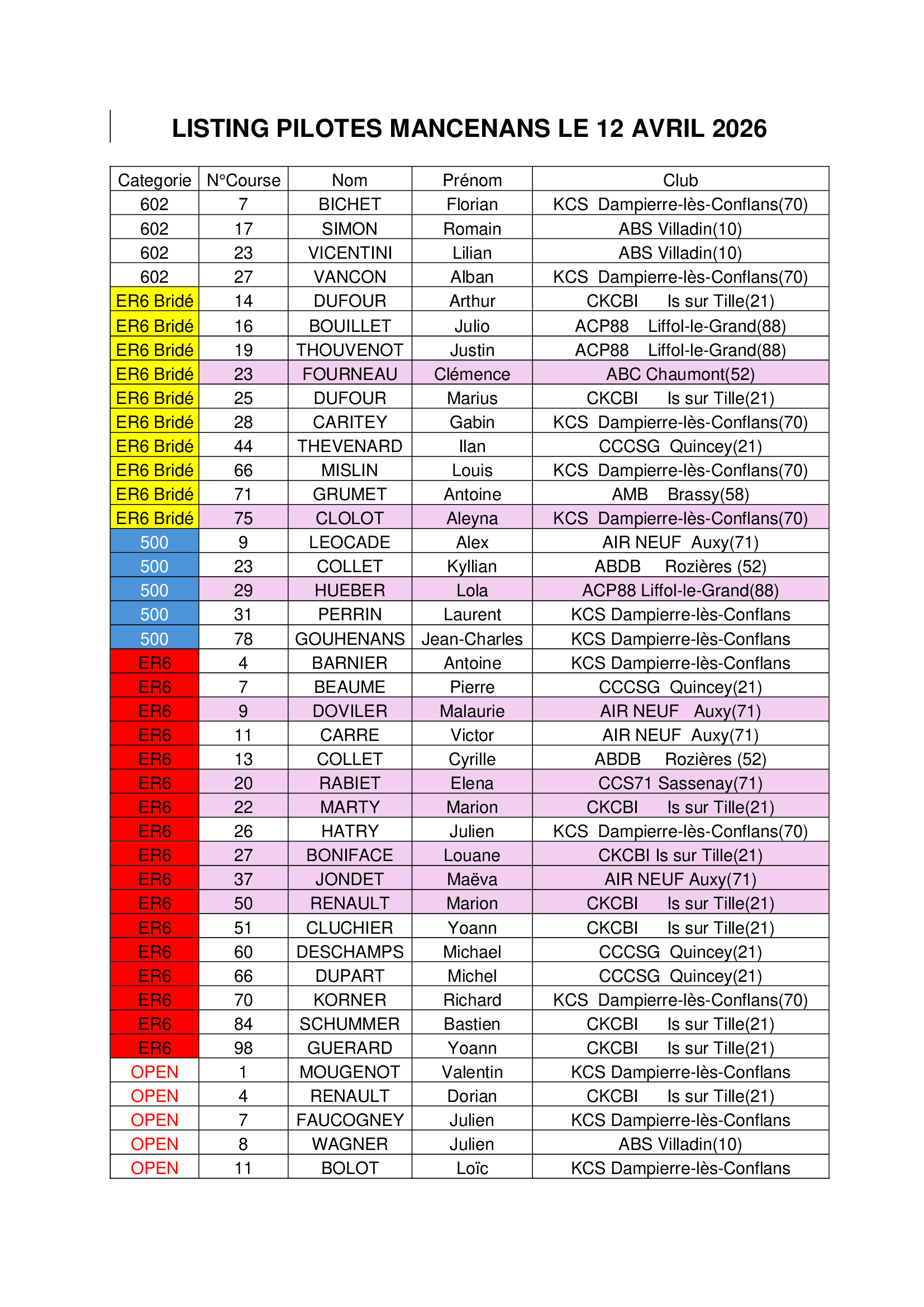 Liste des engagés au 04/04/2025